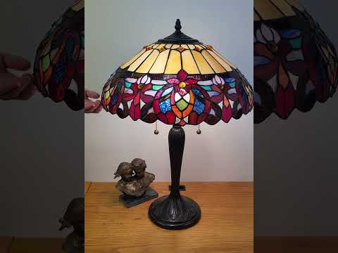 - This Tiffany lamp features a traditional Victorian floral design. The vibrant colors illuminate the room when the lamp is lit making it the focal point of any room.