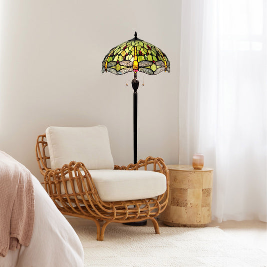Tiffany Style Dragonfly Floor Lamp - Green - F1859