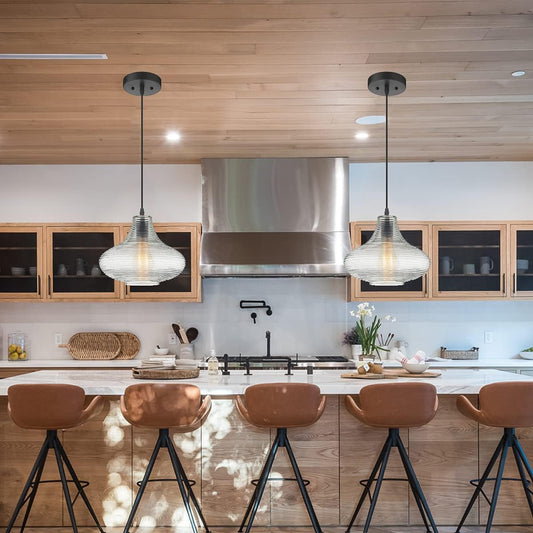 Marseille Modern Glass Pendant Hanging Light Fixture, Black, GH02
