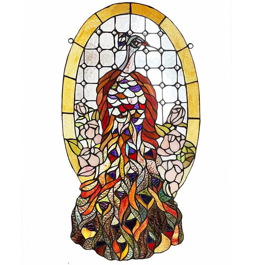 Peacock Tiffany Style Stained Glass Window Panel, KP315