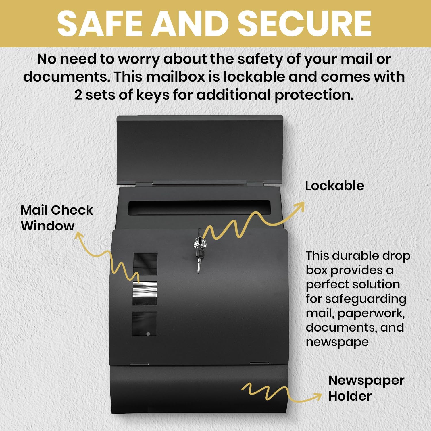 - Convenient and Versatile: This spacious mailbox provides a secure solution for safeguarding not only mail but also paperwork, documents, and newspapers, keeping your important items organized and protected.